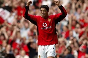 2003年11月1日,C罗在曼联对阵朴茨茅斯的英超比赛中替补出场,传射建功,以任意球破门斩获曼联生涯处子球。